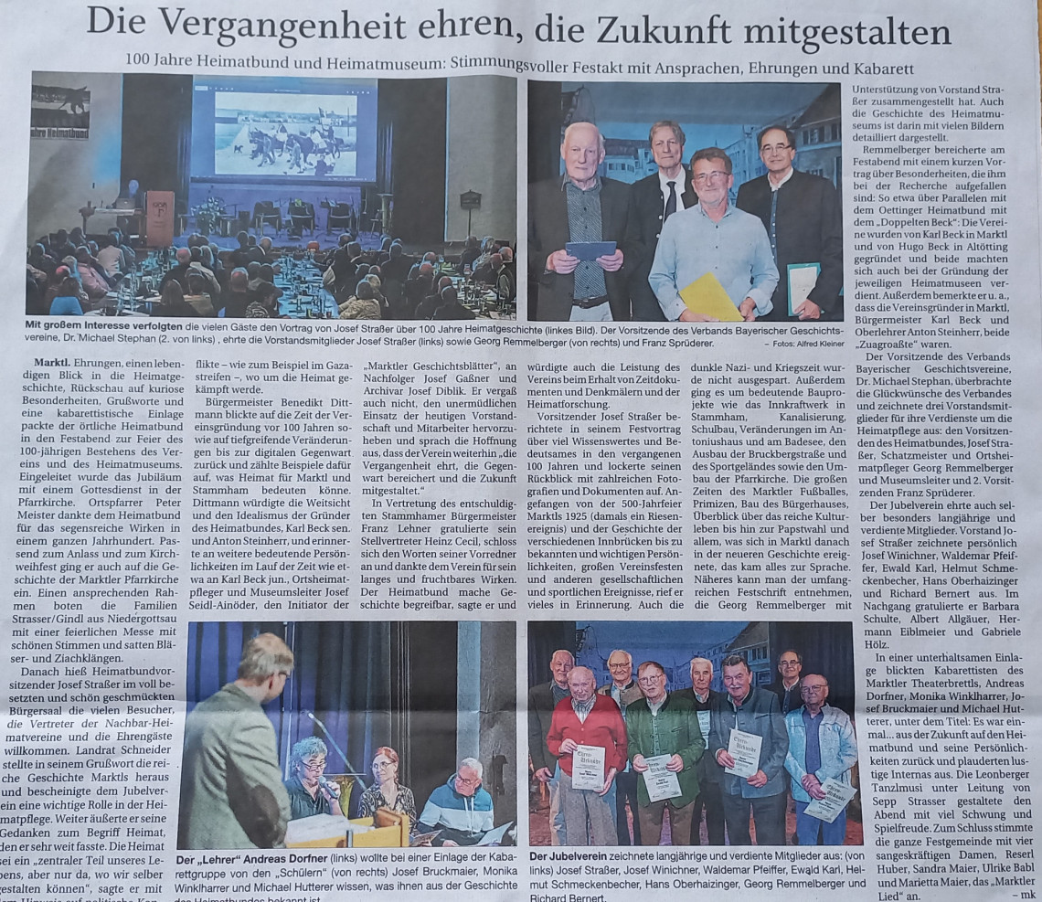 Am Samstag, dem 18. Okt. 2025 um 19:30 Uhr, feierte der Heimatbund Marktl sein 100-jähriges Gründungsjubiläum im Bürgersaal zu Marktl. Die ganze Bevölkerung, besonders alle Heimatbundmitglieder waren hierzu herzlich eingeladen.