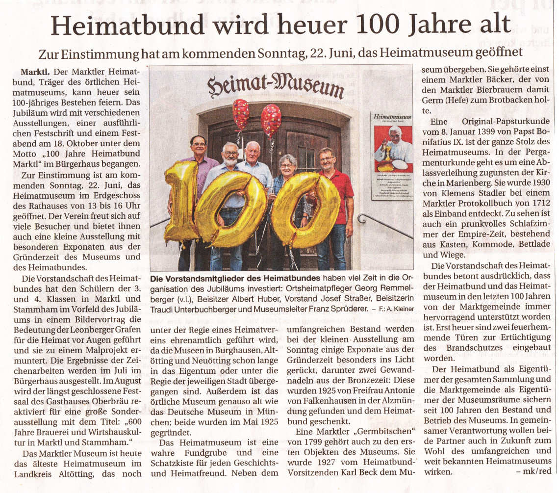 Zum 100-jährigen Jubiläum des Heimatbundes Marktl erschien auch eine umfangreiche Festschrift mit 80 Seiten.